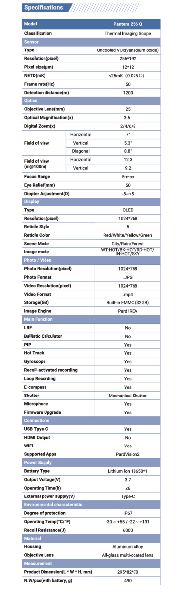 PARD Pantera 256Q 25mm warmtebeeld richtkijker